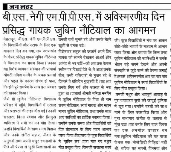 Visit of Renowned singer Mr. Jubin Nautiyal on Jan Lehar